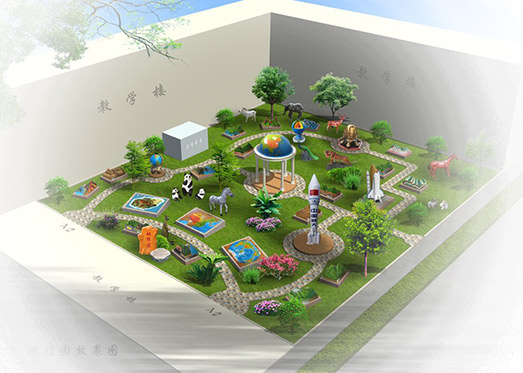 • 設計制作校園雕塑文化、地理園、生物園、生態園